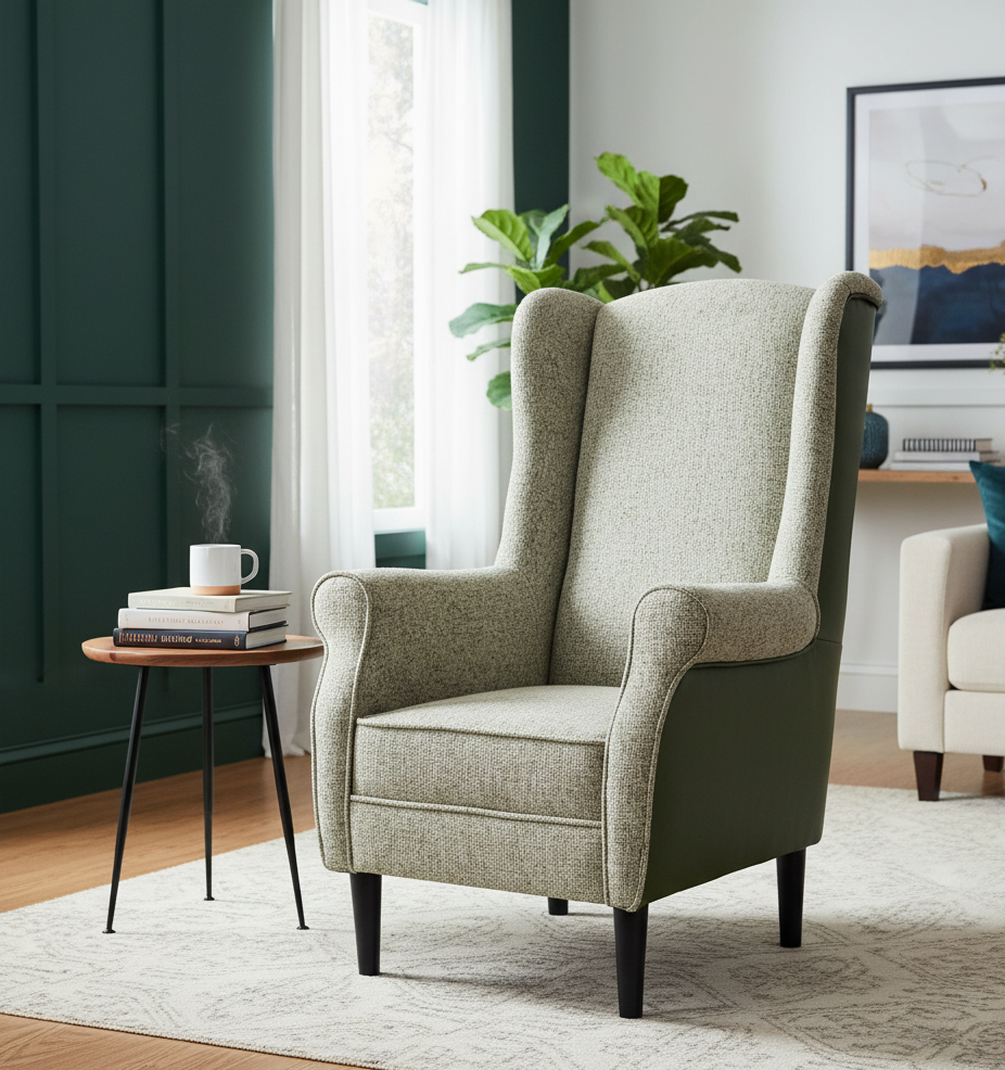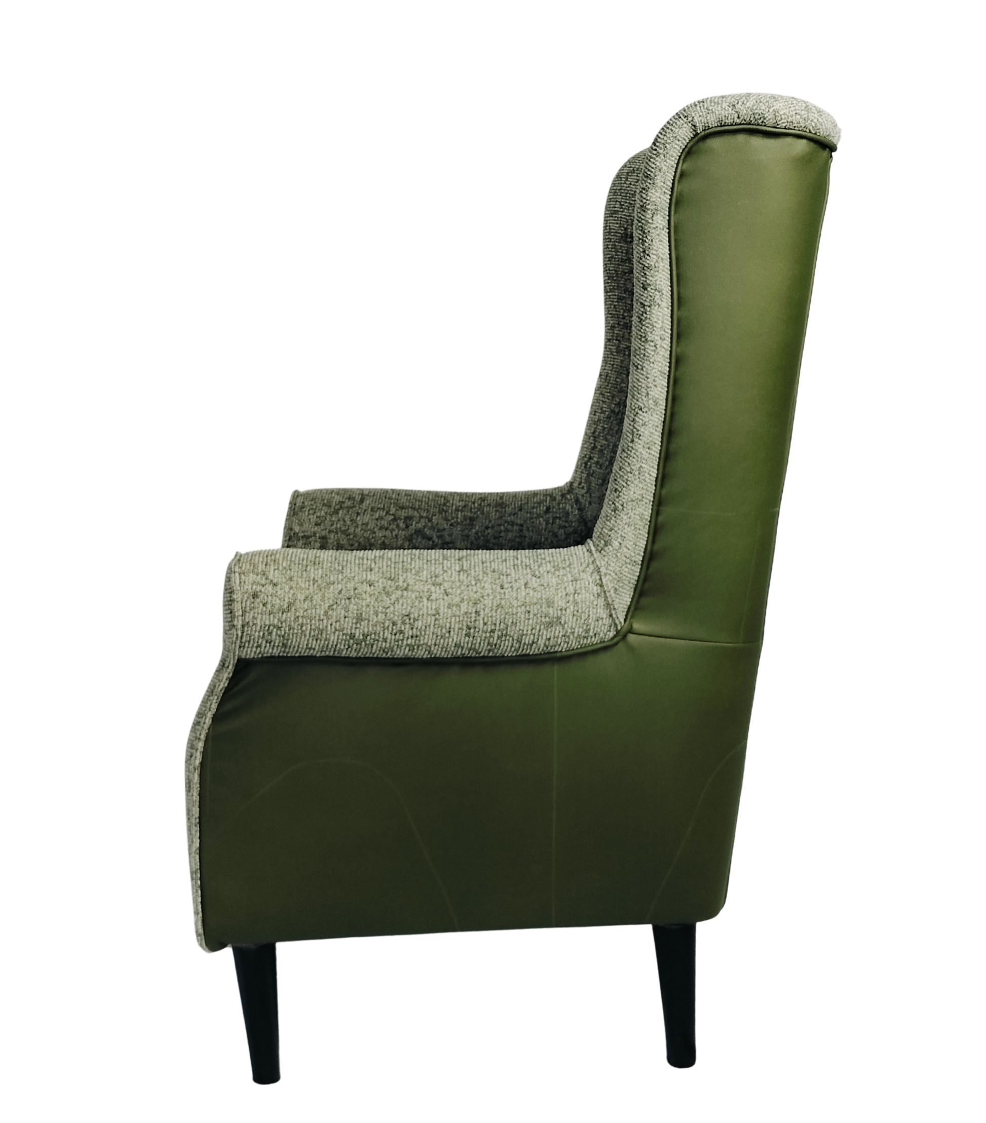 - Klasyczny kształt uszaka: Wysokie oparcie i charakterystyczne boczki zapewniają wyjątkowy komfort i wsparcie dla pleców i głowy.