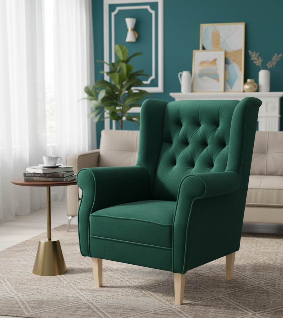 Fotel FRODO – elegancki fotel uszak z pikowanym oparciem