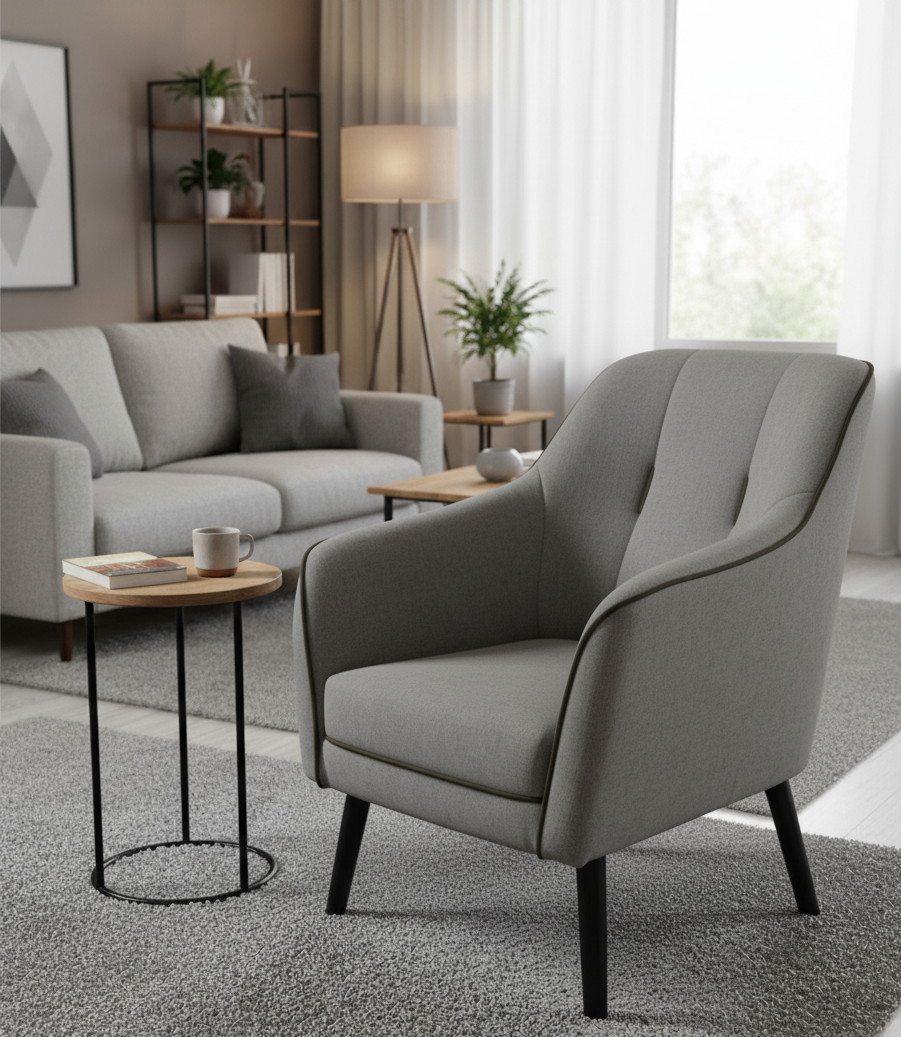 Fotel MARS to mały fotel wykonany w stylu SKANDYNAWSKIM. Będzie idealnym dodatkiem salonowym, sypialnianym czy gabinetowym . Delikatny materiał połączony z lekkimi przeszyciami oraz lamówkami w kontrastowym kolorze podkreślają nowoczesny styl zastosowany w fotelu.