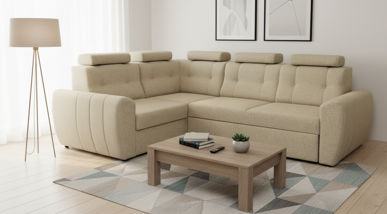 - Funkcja Spania: Łatwe i szybkie przekształcenie narożnika w wygodne łóżko, idealne zarówno do codziennego użytku, jak i dla gości.