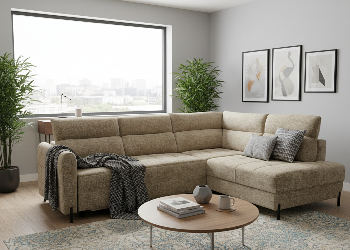 Idealny narożnik do salonu: Stwórz swoją strefę komfortu i wypoczynku.