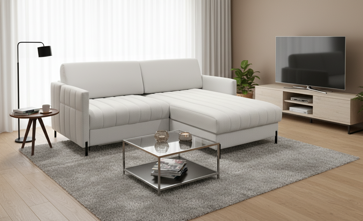 - Pojemnik na pościel: Przestronne miejsce do przechowywania, pomagające utrzymać porządek w salonie.