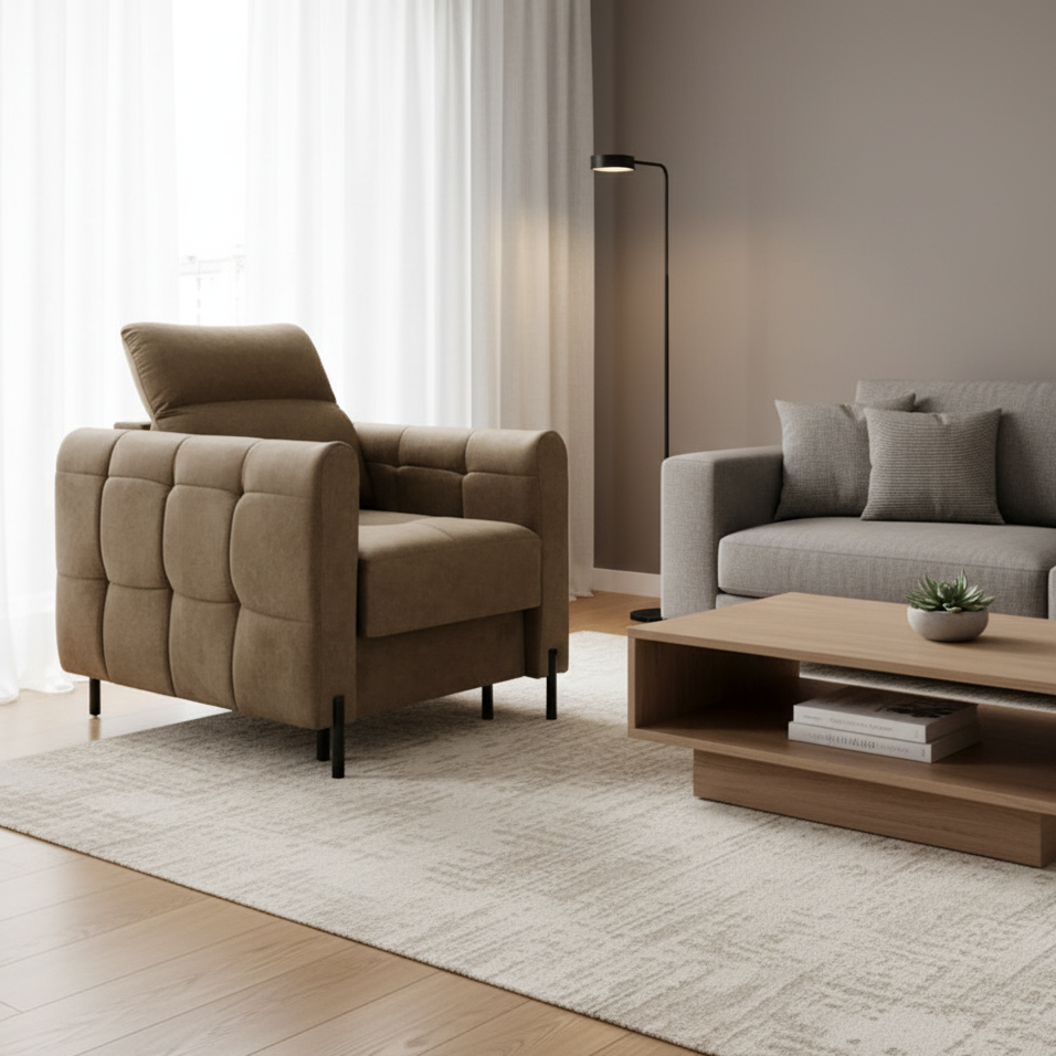 - Boczki z modnymi przeszyciami: Subtelne detale, które nadają fotelowi charakteru i stylu.