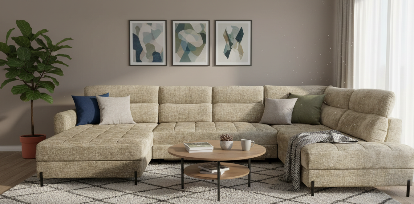 - Nowoczesny design: Elegancki kształt U, idealny do nowoczesnych aranżacji salonu.