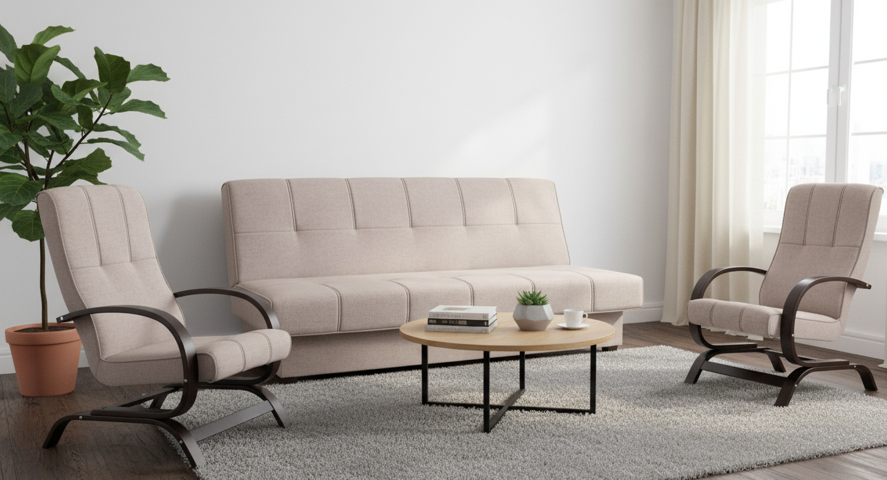 Zestaw wypoczynkowy z rozkładaną sofą i 2 fotelami ORIGI